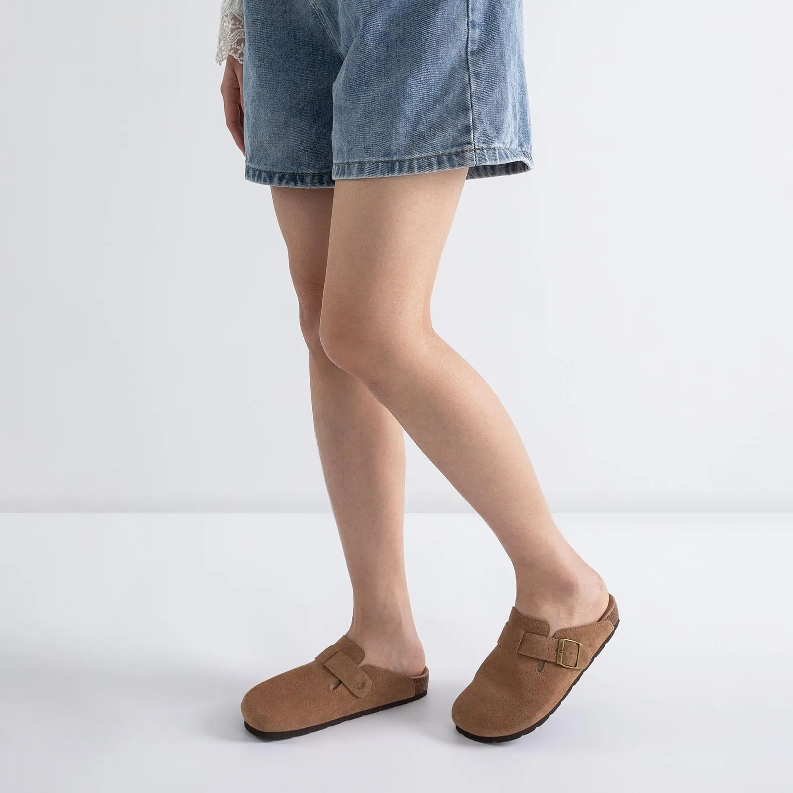 Echte Wildleder-Clogs – Unisex-Komfort mit Fußgewölbestütze & Korkfußbett